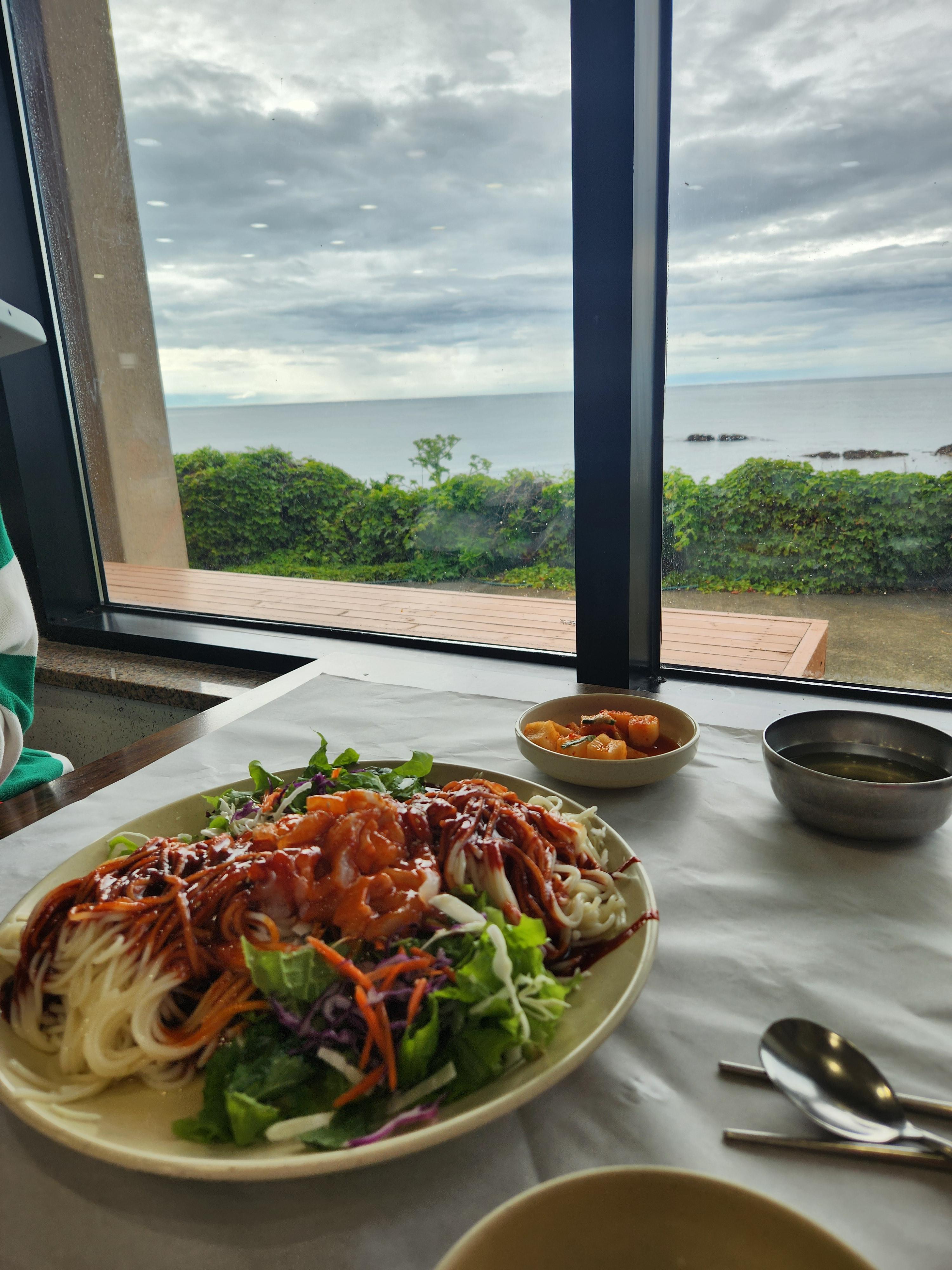 고소하고 매콤 달콤한 고추장 소스와 부드러운 회조합이 일품이었다. 국수도 제주 중면으로 푸짐하다. 성게 국수와 물회 등 다양한 메뉴가 있지만 오는 사람 대부분 회국수를 먹는 듯했다. 가격도 1인분 12000원으로 가성기가 아주 훌륭했다.