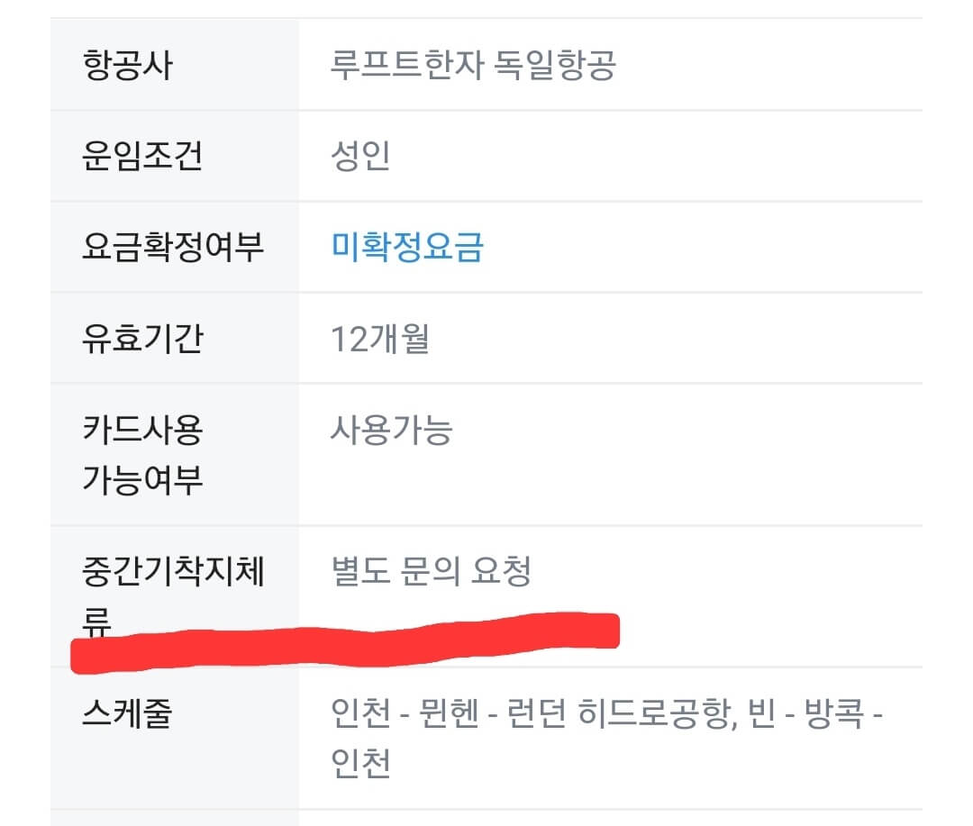 여기서 체크할 것이 한 가지 더 있는데 바로 경유지 체류(스탑오버)가 가능한 항공권인가 아닌가입니다. 하여 요금 상세규정 항목을 체크해 봅니다. 체류 불가인 항공권도 있으니 꼭 체크해봐야 합니다. 제가 예로 선택한 항공권은 별도 문의 요청으로 되어 있습니다. 일정을 짠 후 해당 여행사에 전화해서 구간별로 예약을 하시면 되겠습니다. 경우에 따라 별도 문의 없이 바로 인터넷 예약이 가능하게 열려 있는 항공권도 있습니다.