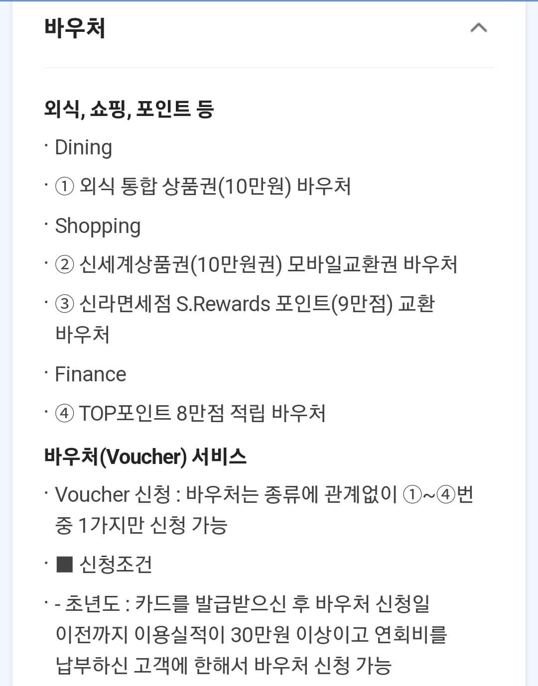 이 카드를 선택한 이유는 보통 PP카드를 발급해주는 신용카드들은 모두 프리미엄 카드로 연회비가 10만원에서 30만원 선입이다. 물론 30만원짜리가 혜택이 제일 많겠지만 연회비를 해결하기가 너무 큰 금액입니다. 반면 블리스 5 카드는 연회비 10만원으로 프리미엄 카드 연회비 중 저렴한 편입니다. 거기에 이용실적 30만원이면 10만원 상당의 다양한 바우처가 나옵니다. 이것이 블리스 7보다 블리스 5가 더 좋다고 보는 대목인데요. 바우처 선택사항이 훨씬 더 실용적입니다. PP카드는 비자카드로만 발급받으면 조건 없이 발급됩니다.