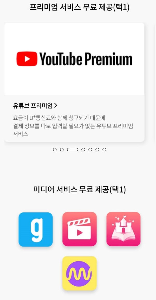 추가 선택 1가지 : 미디어 서비스 무료 제공으로 지니뮤직, U+월정액, U+아이들 생생도서관, 밀리의 서재에서 한 가지를 더 선택할 수 있습니다.